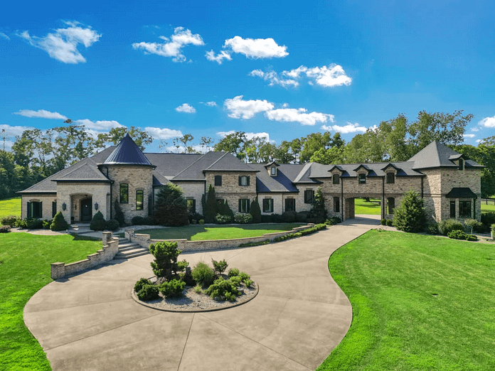 This brick & stone home is located at 520 Cassity Way in Nicholasville, Kentucky and is situated on 5 acres of land.