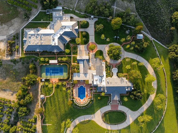 This 137-acre estate is located at 24331 Coto De Caza Drive in Coto de Caza, California. It features a main house, 3 guest houses, pool house, greenhouse, barn and car museum. It was built in 1986 by US Air Force Reserve Commander and real estate magnate Major General William Lyon and his wife Willa Dean Lyon.