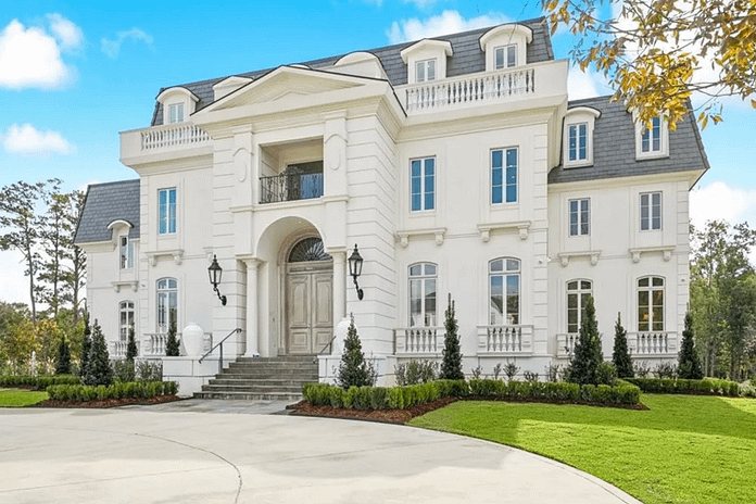 This French-inspired home is located at 60 Preserve Lane in Mandeville, Louisiana and is situated on 1.1 acres of land.