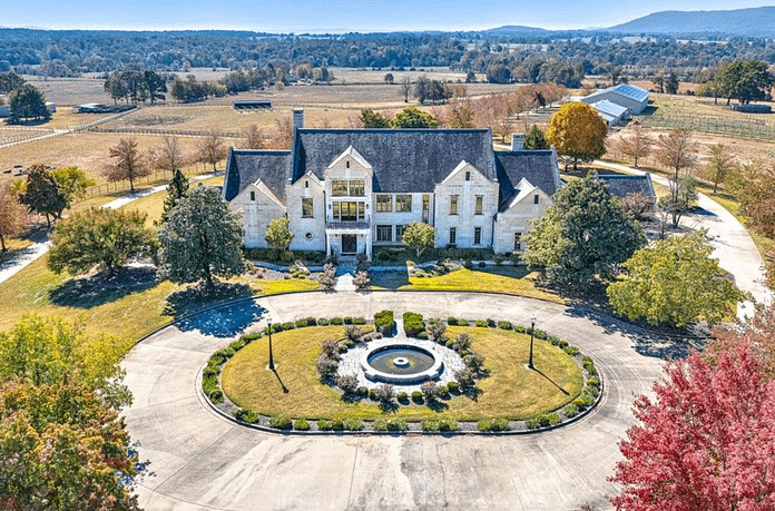 This 250-acre estate is located at 1753 Valley View Church Road in Harrison, Arkansas. It features a main house, caretaker’s house, lake house, riding arena, 4 stables and more.