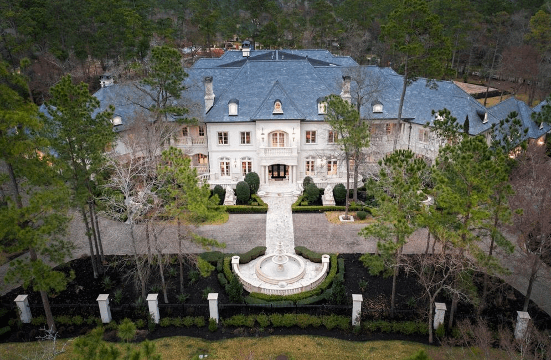 This French style home is located at 88 W Grand Regency Circle in The Woodlands, Texas and is situated on over 4 acres of land.