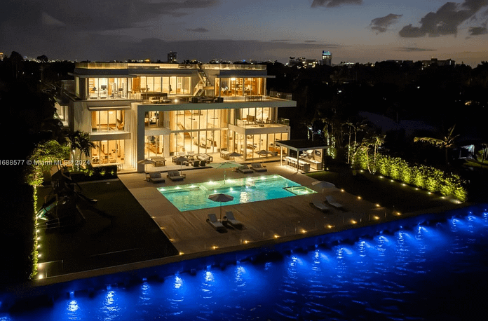 This modern waterfront home is located at 284 Bal Bay Drive in Bal Harbour, Florida and is situated on nearly an acre of land.