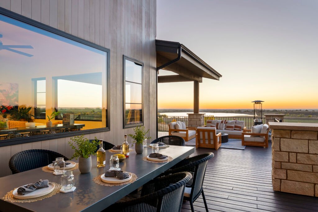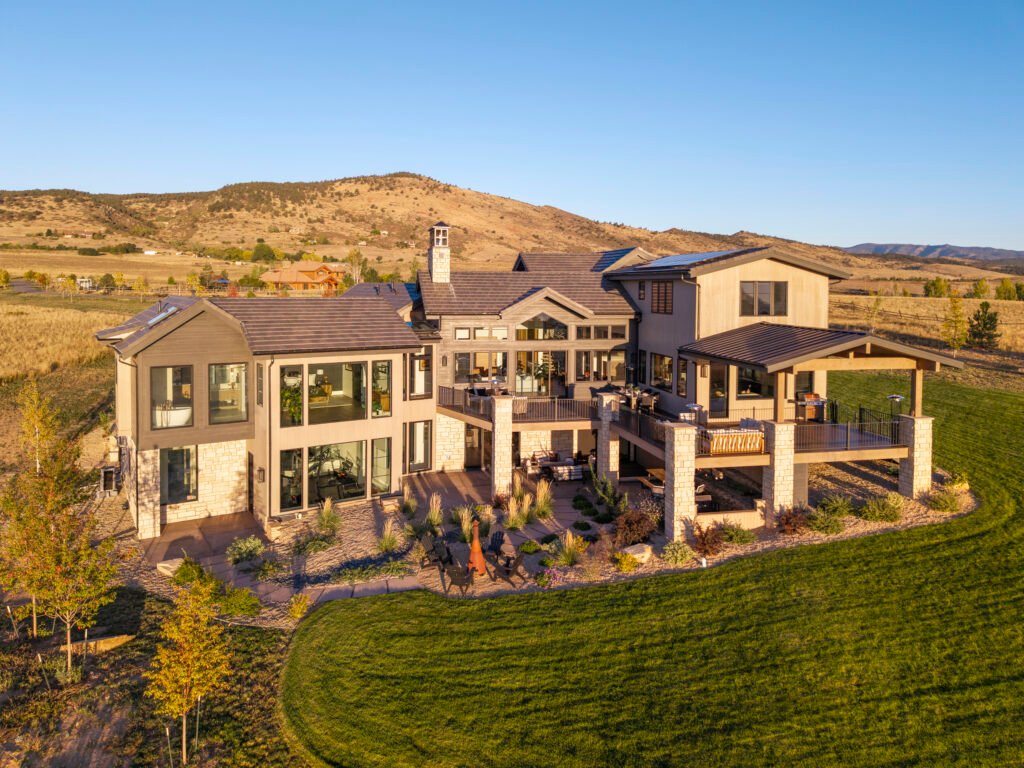 Set in Longmont’s Caribou Springs Ranch community amidst the Rocky Mountain foothills, 11562 Eagle Springs Trail is a grand architectural masterpiece spanning 7,239 square feet. Built on 5.4 acres of rolling hills and overlooking a private reservoir, the retreat combines the grandeur of its surroundings with sleek, contemporary style.