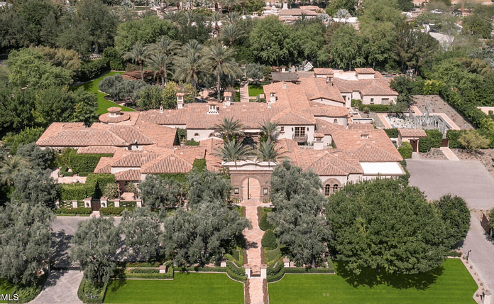 This Spanish-style home is located at 6240 N 59th Place in Paradise Valley, Arizona and is situated on over 2 acres of land.