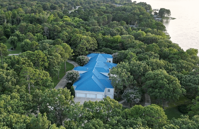 This lakefront brick home is located in Russellville, Arkansas and is situated on over 7 acres of land.