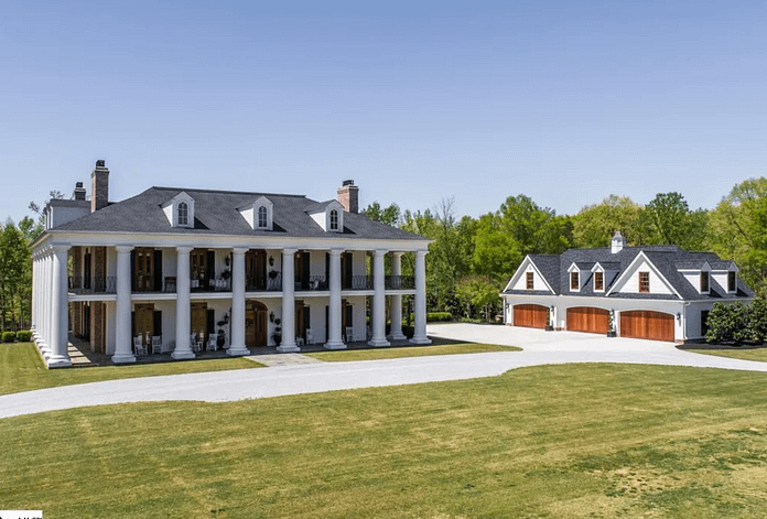 This 47-acre estate is located at Fountain Inn, South Carolina. It was built in 2012 and features a main house, detached 6-car garage and a barn.