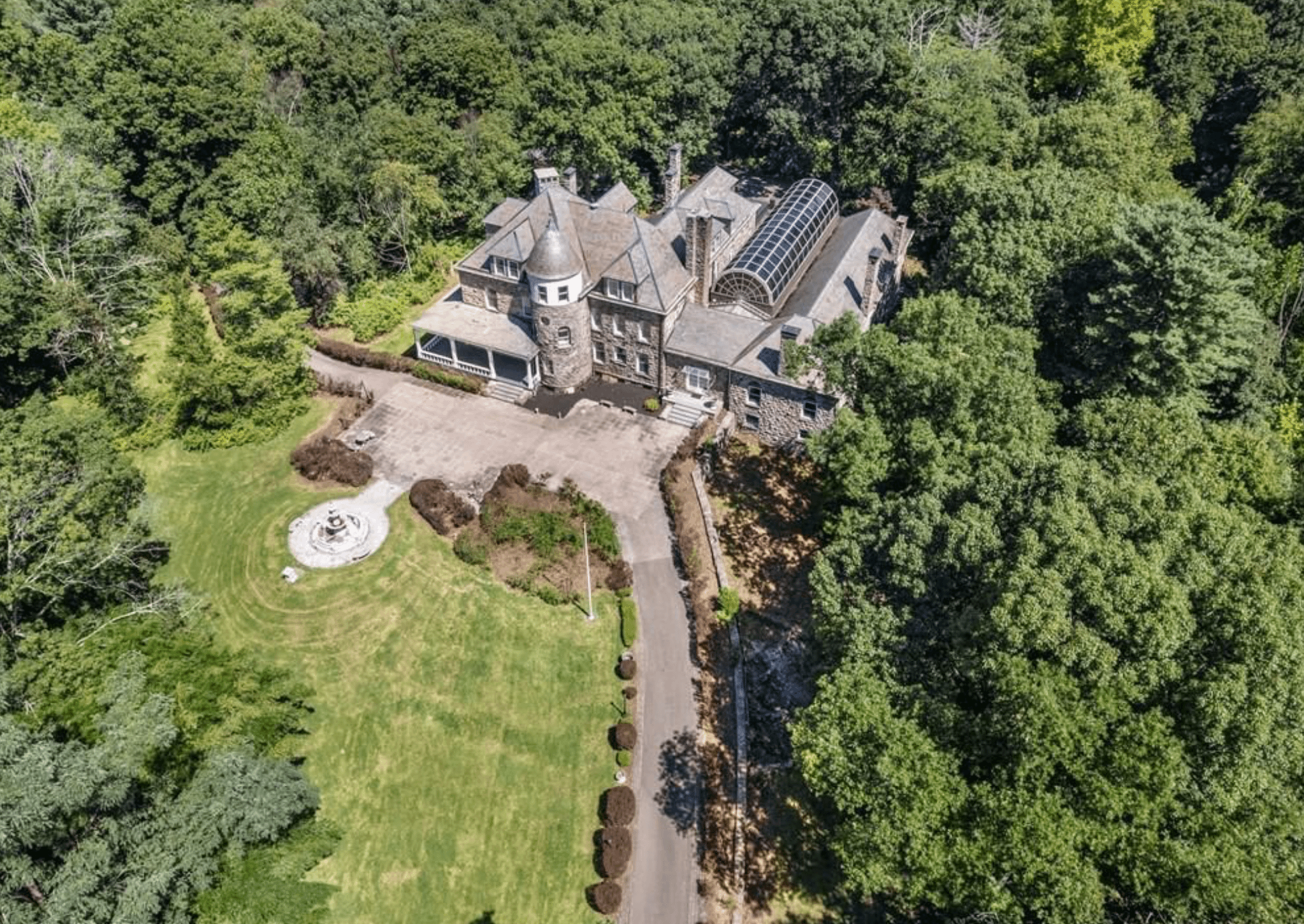 This historic stone home is located at 139 Scarborough Road in Briarcliff Manor, New York and is situated on over 9 acres of land.
