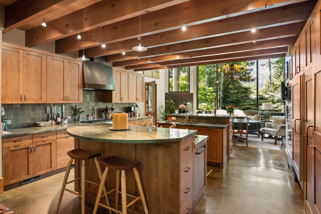 The Details: This home at the base of Smuggler Mountain can only be described as chalet chic. With seven bedrooms, including a guesthouse, and expansive decks, it’s perfect for large gatherings. Convenient amenities include a two-car garage with a snowmelt system and stylish mudroom with lockers.
