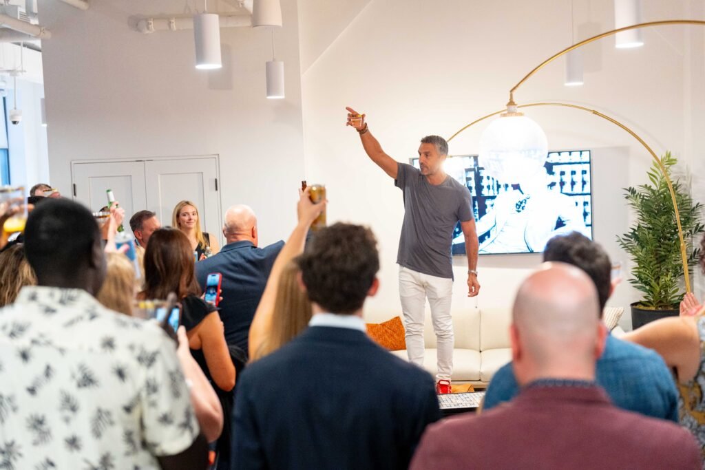 The visit kicked off with a toast to the new Brooklyn Park Slope office, which officially debuted on September 4th, as featured on The Real Deal. Managing Partners Michael Smith and Donald Mastroianni were in attendance alongside agents from Long Island and Connecticut, who came to celebrate the new space and show their support. The office marks our eighth location in the Empire State.