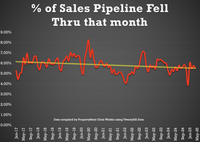 In April, as a whole, 5.51% of sales in the UK agents pipelines fell through. For comparison, 2024 average: 5.36%.