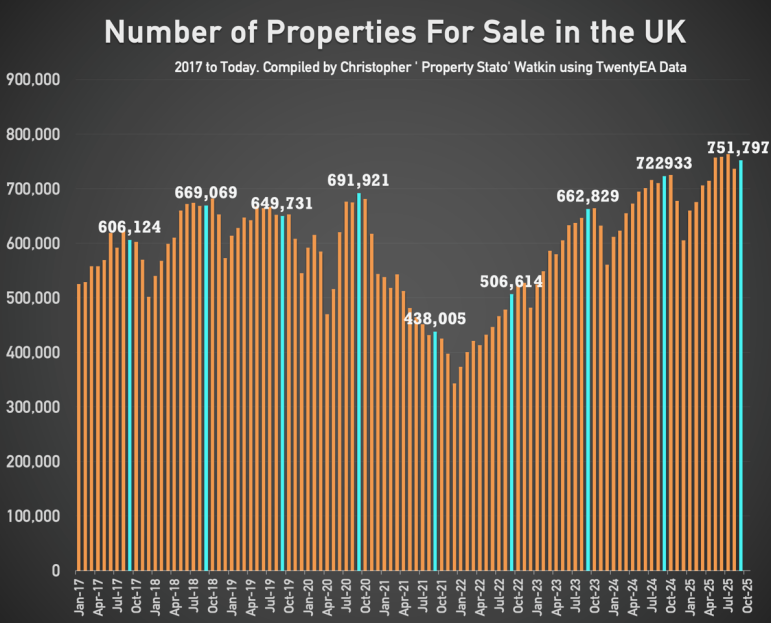 751k homes on the market at the start of October, 4% higher than October 2024. (723k)