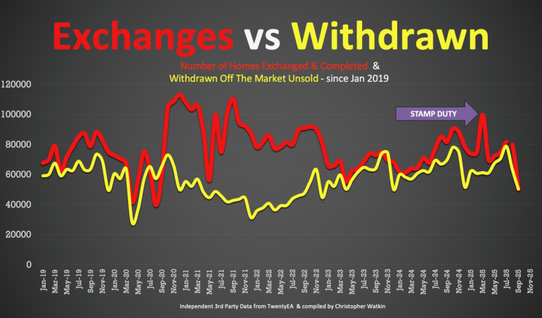 Volumes softened everywhere in late summer, however London’s fall in sales agreed was much larger, and its conversion from listings to sales slipped further. The rest of the UK held conversion steady and protected more of its sales volume. Clear late-summer divergence.