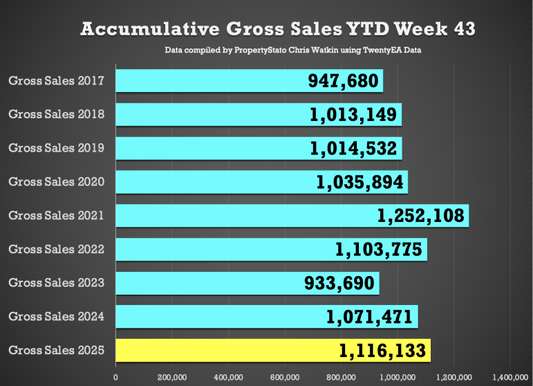 + YTD: 1.116m gross sales, which is 4.2% ahead of 2024 (1.071m) and 12.5% above the 2017–19 average (992k). .
