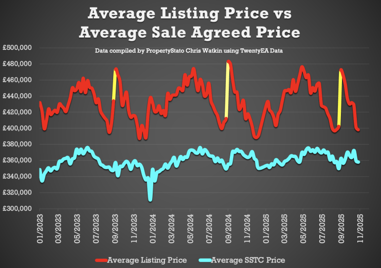 + The average listing price has dropped from £452k in Sept to £415k in October.. ie fewer expensive homes being listed .