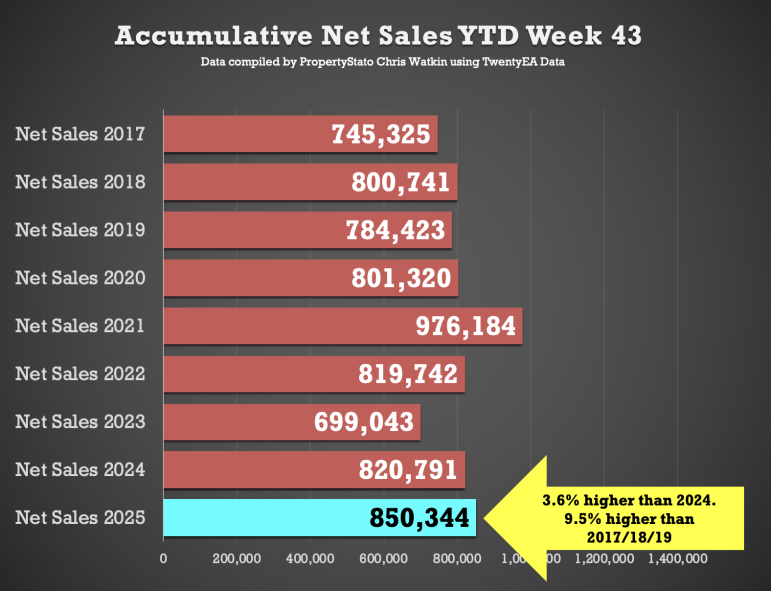 That means October 2025 still outperformed both those years by more than 24k additional sales, which is hardly the sign of a struggling market.