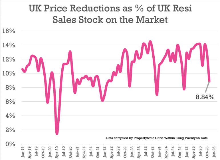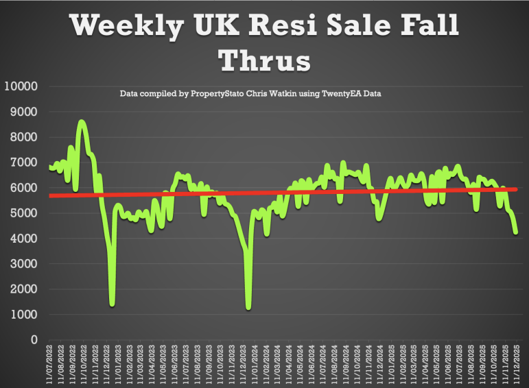 + 9.1k reductions this week, lower than last week’s at 12.8k (Estate Agents seem to forget they can reduce houses prices after the first week in November!). 23.2k is the average weekly number of reductions for 2025.