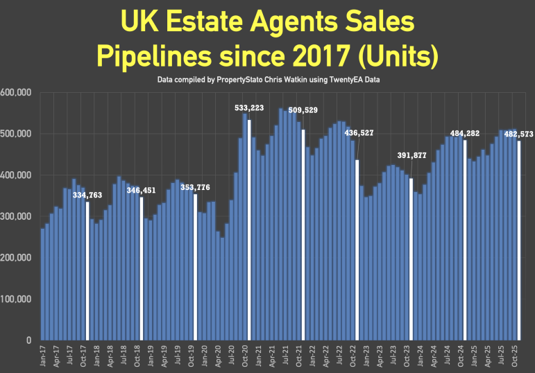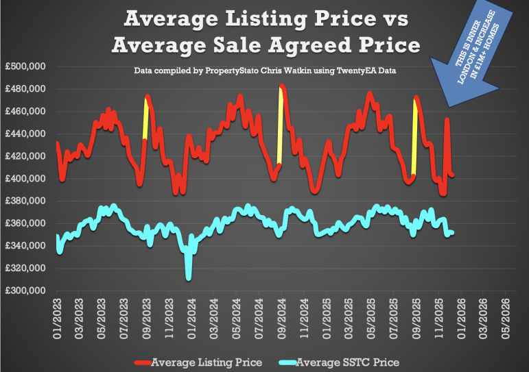 + November 2025 agreed sales averaged £342.27 per sq.ft. 0.7% higher than 12 months ago and 12.6% than 5 years ago. The £/sqft at sale agreed matches the HM Land Registry Index with a 98% accuracy, 5 months in advance. That is why it is so important. November figures will follow in next weeks show.