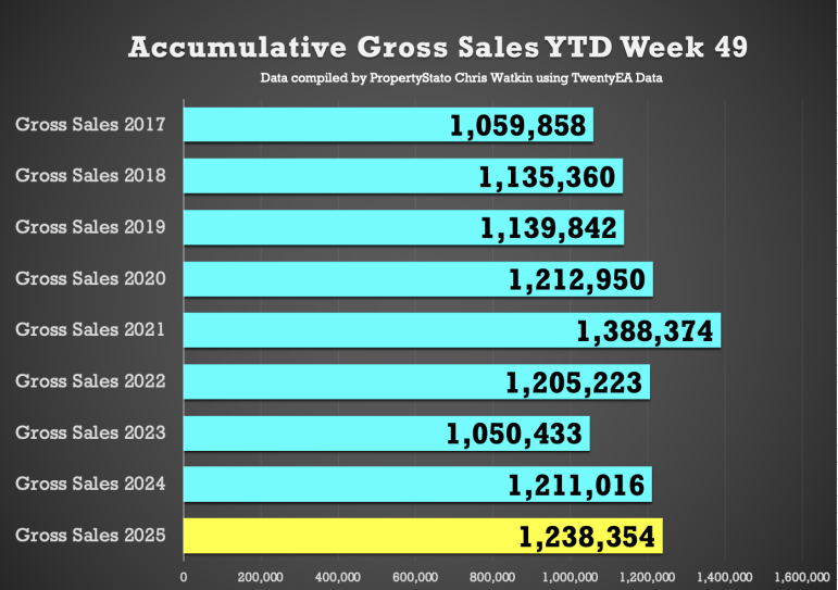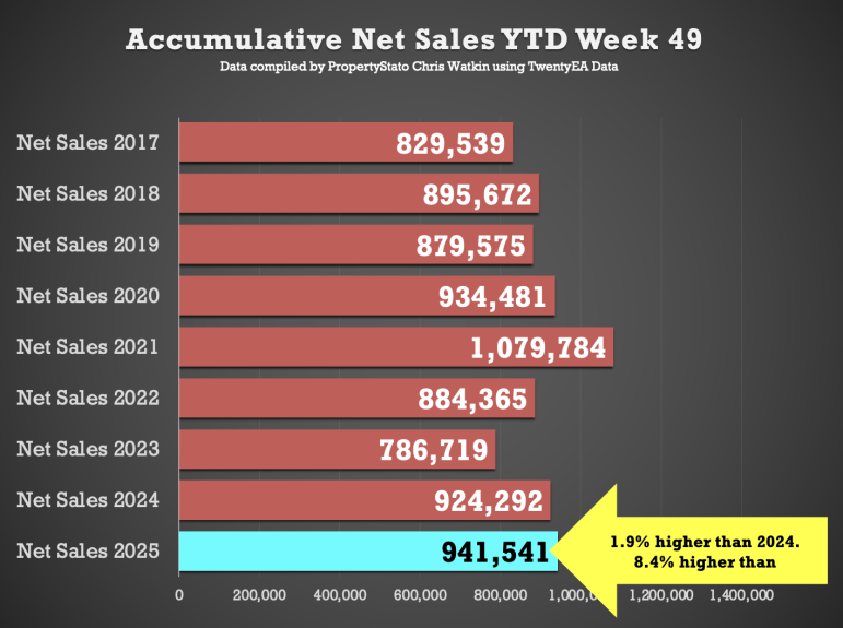 + YTD: 1.238m gross sales, which is 2.3% ahead of 2024 (1.211m) and 11.4% above the 2017–19 average (1.111m).