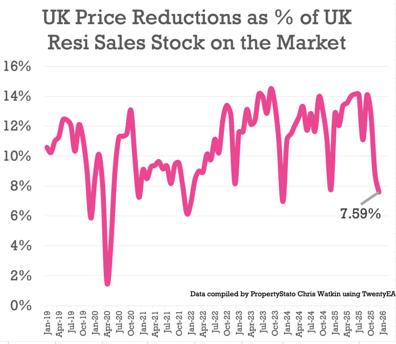 + 9.9% of homes on agents’ books went SSTC in December ’25. Down as expected from 13.5% in November,  15% in October, 14.1% in Sept, 14.5% in Aug, 15.4% in July, 15.3% in June, and 16.1% in May.