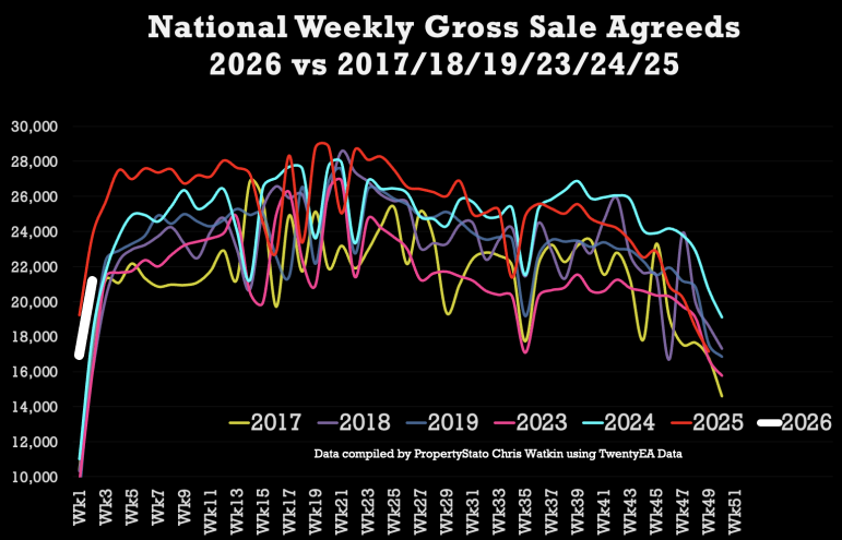 In the first show of 2026, I take a look at the UK property market in the UK Property Market Stats Show for the week ending Sunday 18 January 2026 (week two), alongside the brilliant Ben Madden, founder of Digital Sparks and chair of Fine & Country NAC.